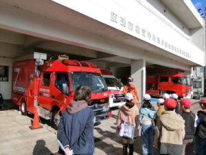 3年生 校外学習 行事のようす 2025.12.092025.12.22 12月9日(火)に、社会科の学習で、警察署と消防署に見学へ行きました。見学を通して、人々のくらしや安全を守る消防署や警察署のはたらきを知ることができました。